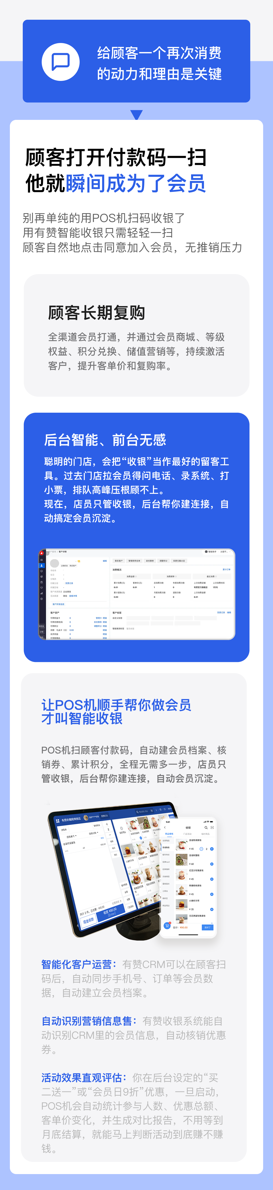 這事交給POS機就行,它比你記性好、比你動作快,而且它不會偷懶。你只要下好基本設(shè)置,收銀員每收一筆錢,就等于幫你多拉了一個會員,多種了一顆回頭的種子。