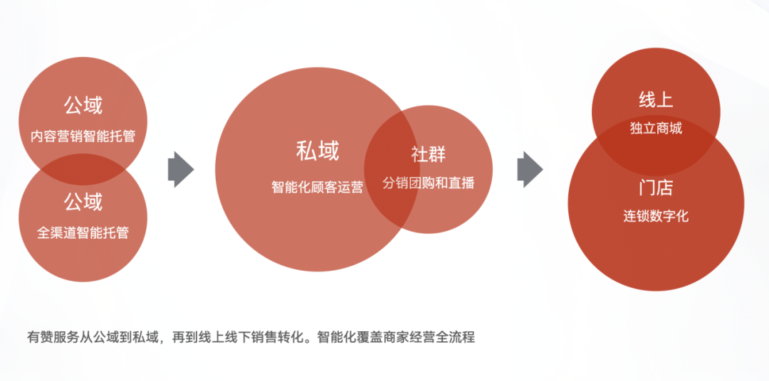 產(chǎn)品從公域到私域,再到線上線下銷售轉(zhuǎn)化,覆蓋商家經(jīng)營的全流程