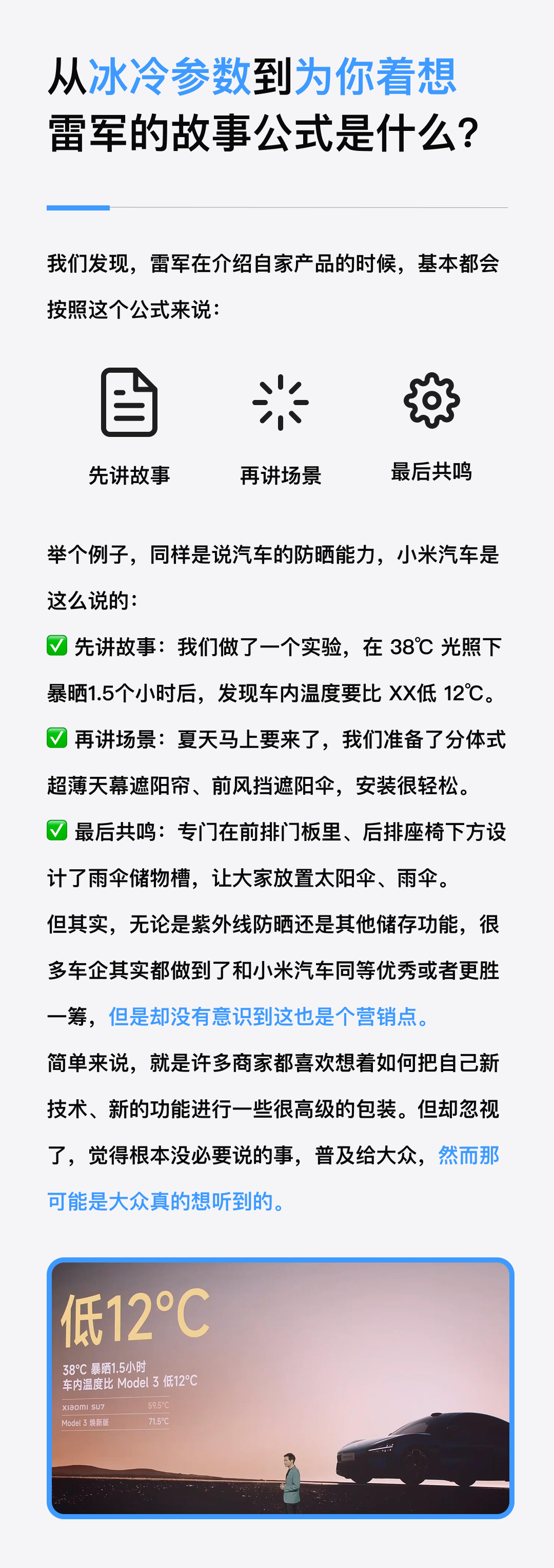 回看雷軍過去五年所有發(fā)布會(huì),他不僅靠產(chǎn)品和技術(shù),更靠講故事把功能變成“買單理由”。每個(gè)功能,他都會(huì)這樣說: